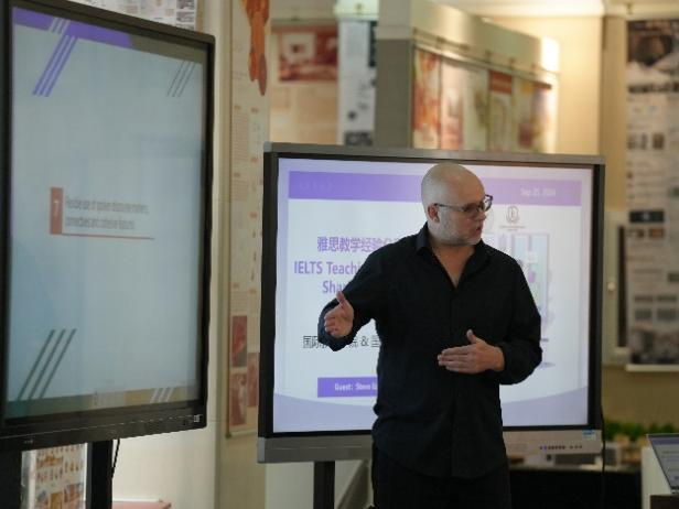 秋风送爽,碧空如洗。2024年9月25日上午,Steve Edwards先生和国际文化学院雅思英语教研室的老师们,进行了一场别开生面的“雅思教学经验分享会”。Steve Edwards先生是英国朴次茅斯大学教师,是一位经验丰富的ESL教师,同时也是一位获得认证的雅思口语考官。